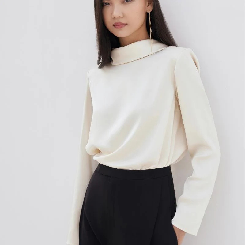 Ivory-colored crisp collar satin shirt